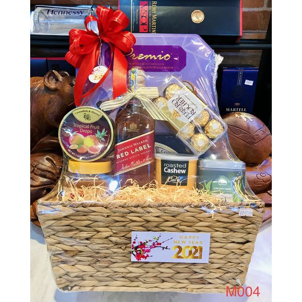 M004 - Giỏ quà đan lát thủ công cao cấp Tết 2022, rượu Red Labed cao cấp