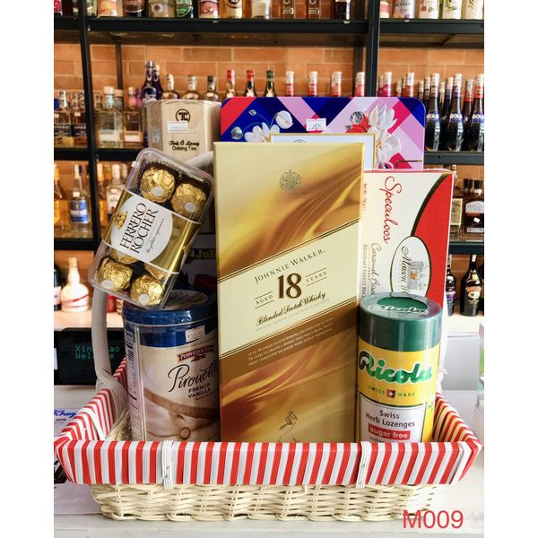 M009 - Giỏ quà đan lát thủ công cao cấp Tết 2022, rượu Johnnie Walker 18 cao cấp