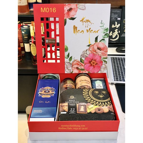 M016 - Hộp quà cao cấp Tết 2022, rượu Chivas 18 cao cấp