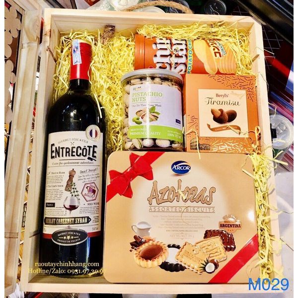 M029 Hộp quà gỗ cao cấp - Vang Entrecote Merlot Cabernet Syrah VDP cao cấp